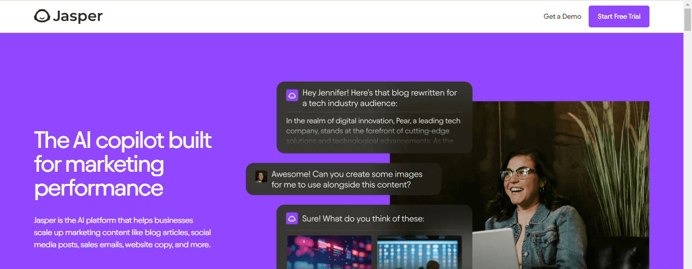Need help crafting written content? Jasper AI uses advanced technology to assist you in generating compelling blog posts, social media updates, and more. Jasper streamlines the content development process with its range of templates and suggestions.