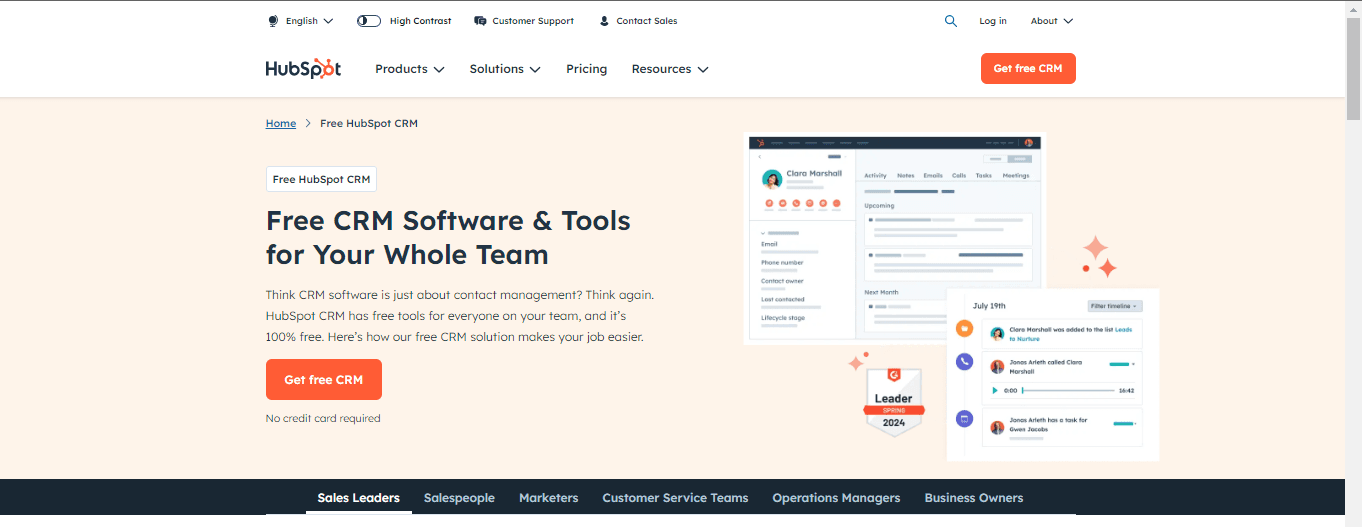 HubSpot’s suite of tools helps you automate tasks, gain insights about your audience, and create content that aligns with your brand voice. It also offers an easy editor for creating a single-page website and provides SEO recommendations to improve organic traffic.